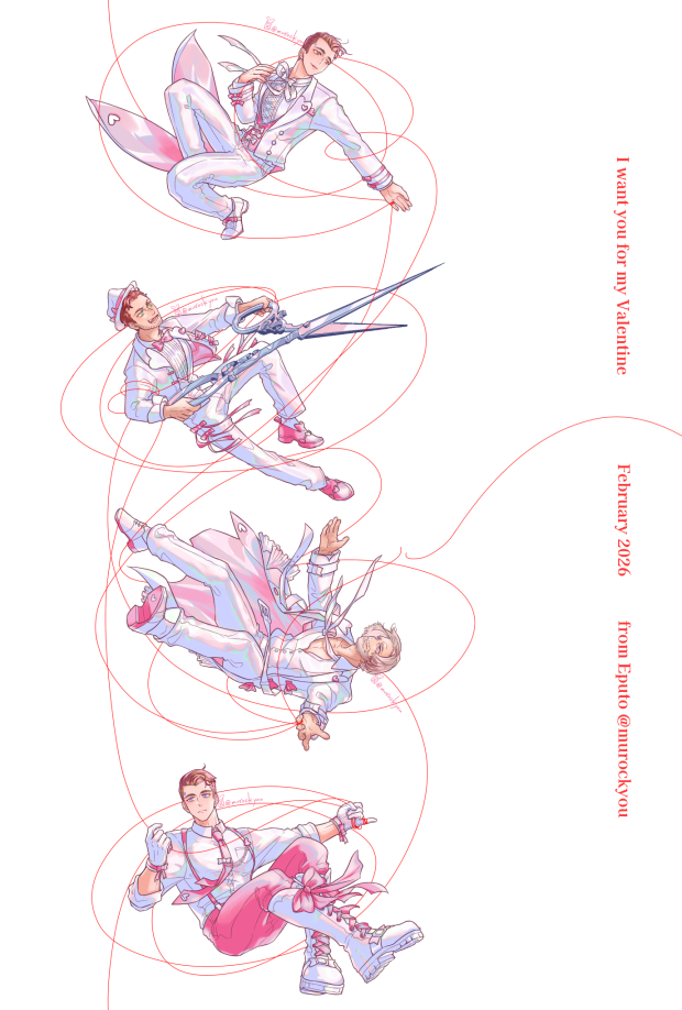 2026年2月14日のDBH webイベント「デトあつめ Chapter.2」に合わせて、DPDメンバー4人組バレンタインのイラストを描きました!